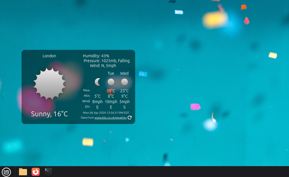 Checking the weather usually involves pulling out a smartphone or opening a completely new browser tab. Both of those actions pull my attention away from my current work. The Weather Desklet neatly solves this by putting the current temperature and a reliable three-day forecast directly on my screen.