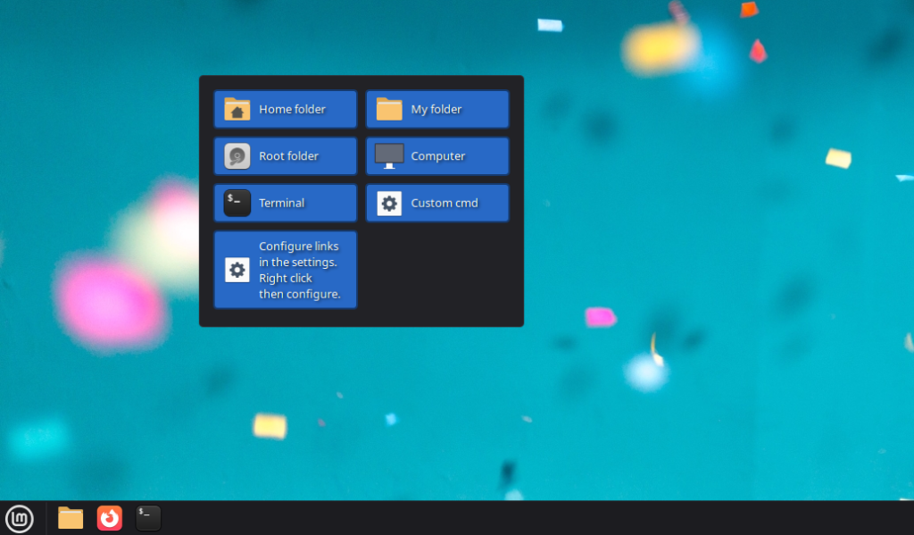 Navigating menus wastes valuable time. I absolutely hate clicking through multiple menus just to launch the same application that I need every morning. Instead, I use a Quick Links desklet, which can create shortcuts for apps, folders, URLs, scripts, or even custom commands and display them right on my screen for easy one-click access.