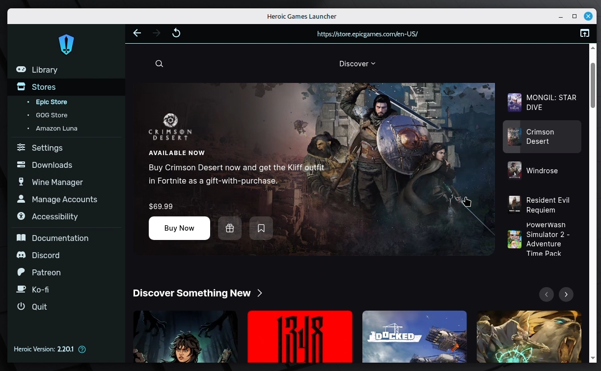 Heroic Games Launcher is a free and open-source tool designed to bring your game libraries together in one clean interface. After signing in to your supported accounts, you can browse, download, and launch your games. Behind the scenes, Heroic automatically configures compatibility tools such as Wine or Proton, allowing many Windows-based games to run smoothly on Linux without complicated setup steps.